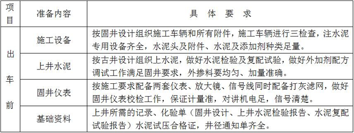 固井施工準備是落實固井施工方案和固井設(shè)計重要的一個環(huán)節(jié),是固好一口井的前期準備工作,具體內(nèi)容及要求如下: